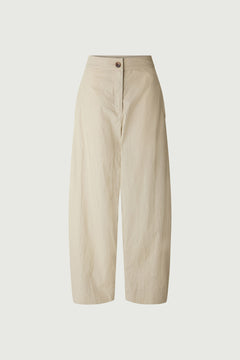 FELICITE is a blouse in off-white organic cotton poplin. Its loose fit and buttoned high collar give a sophisticated look. The removable belt allows it to be worn fitted or flowing, highlighting an elegant silhouette for everyday wear.