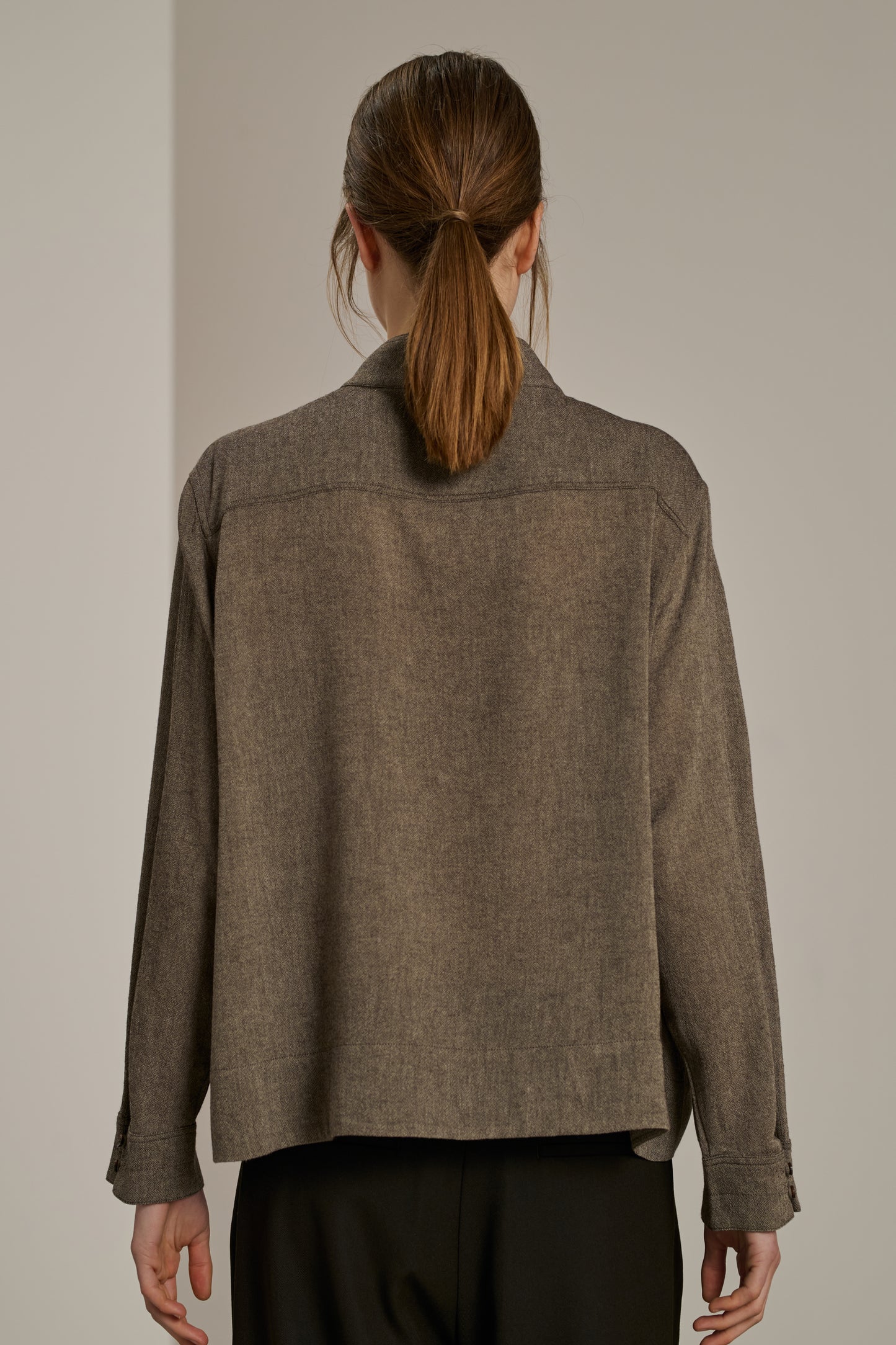BLOSSOM is a wool crepe blouse that combines sophistication and modernity. The subtle cuts on the front, shoulders and sleeves add a distinctive detail, perfect for a chic and contemporary style.